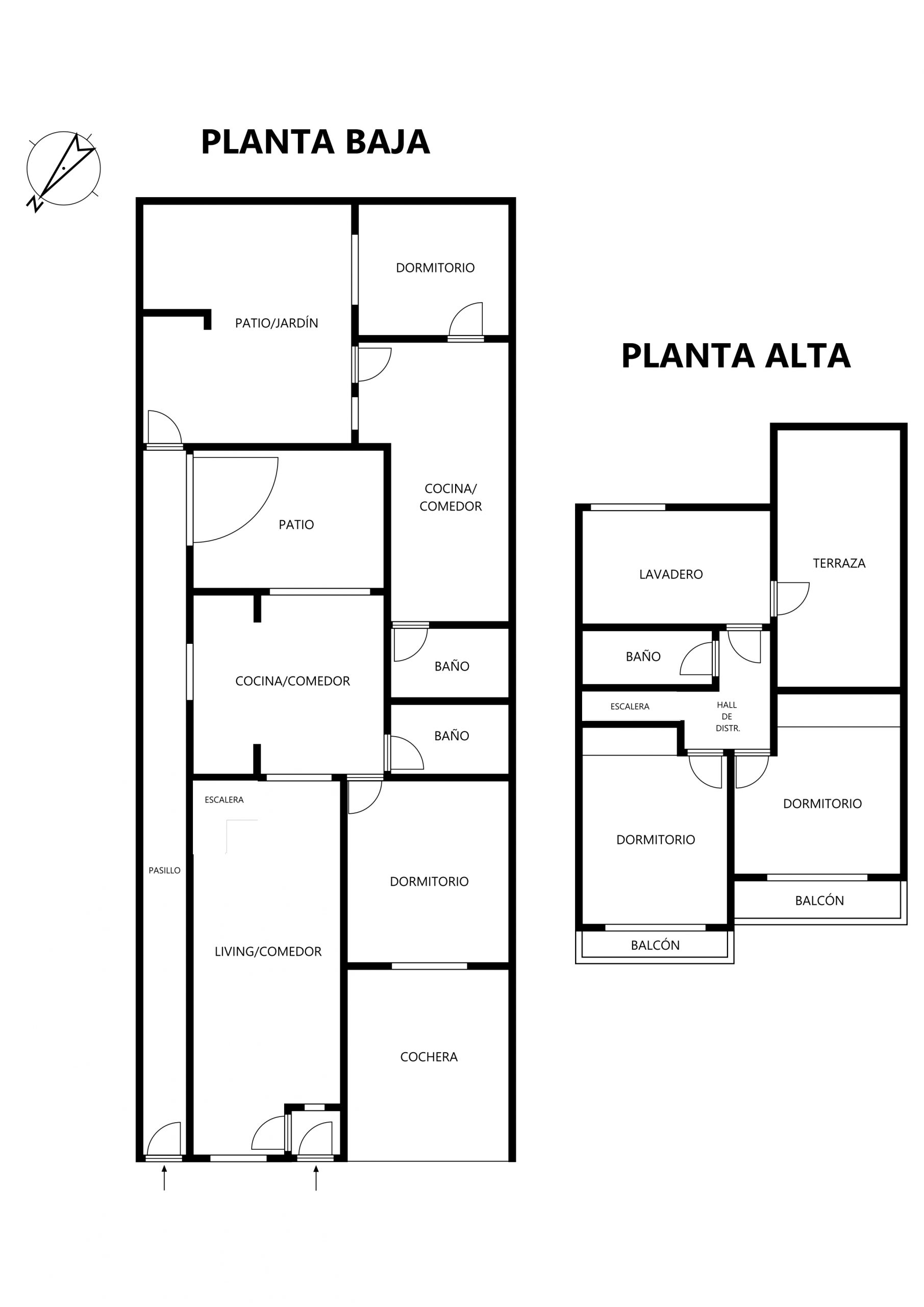 PLANTA ALTA: Dormitorio (3,40 x 3,84), Dormitorio (3,90 x 3,36), Hall (2,70 x 1,27), Lavadero (2,70 x 4,42), Baño (1,26 x 3), Balcón (1 x 3,84), Balcón (0,75 x 3,36), Terraza (5 x 2,70)